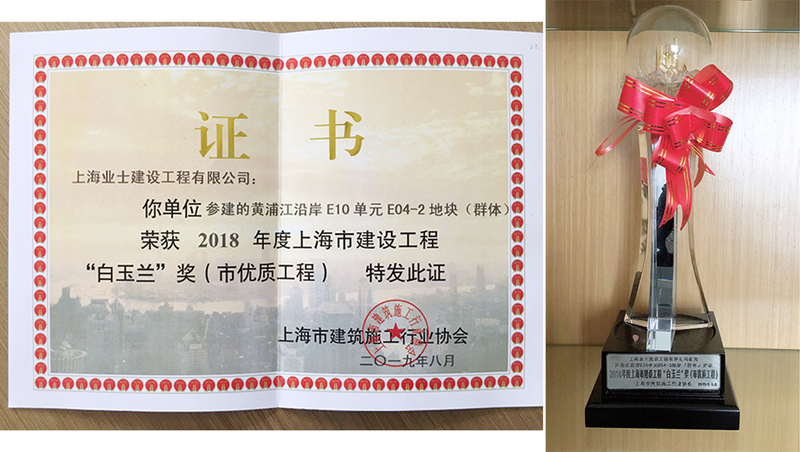 喜讯:热烈庆祝上海业士建筑工程有限公司就上海黄浦江沿岸E10单元E04-2地块项目荣获上海建筑工程质量的“白玉兰”奖。